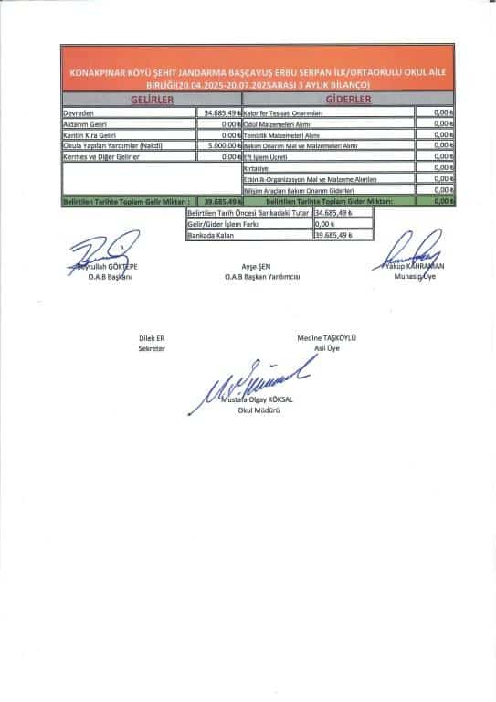 Üç Aylık Okul Aile Birliği Bilançomuz